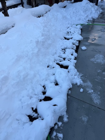 割と効果が出ています。十分に蓄熱したためと思われますので、マットの上に雪を乗せました。密度が足りないのでこれ以上は期待出来ませんが、一定の効果はあったものとみなせますね。
