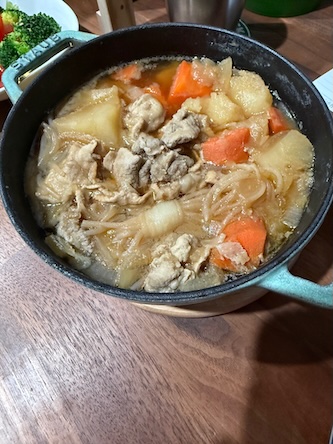 今回の肉じゃがは、豚肉の細切れ肉を使いました。適量でしたので、前回のような肉鍋化はせず、しっかりした肉じゃがとなりました。二人前ですが、完食。更に……。